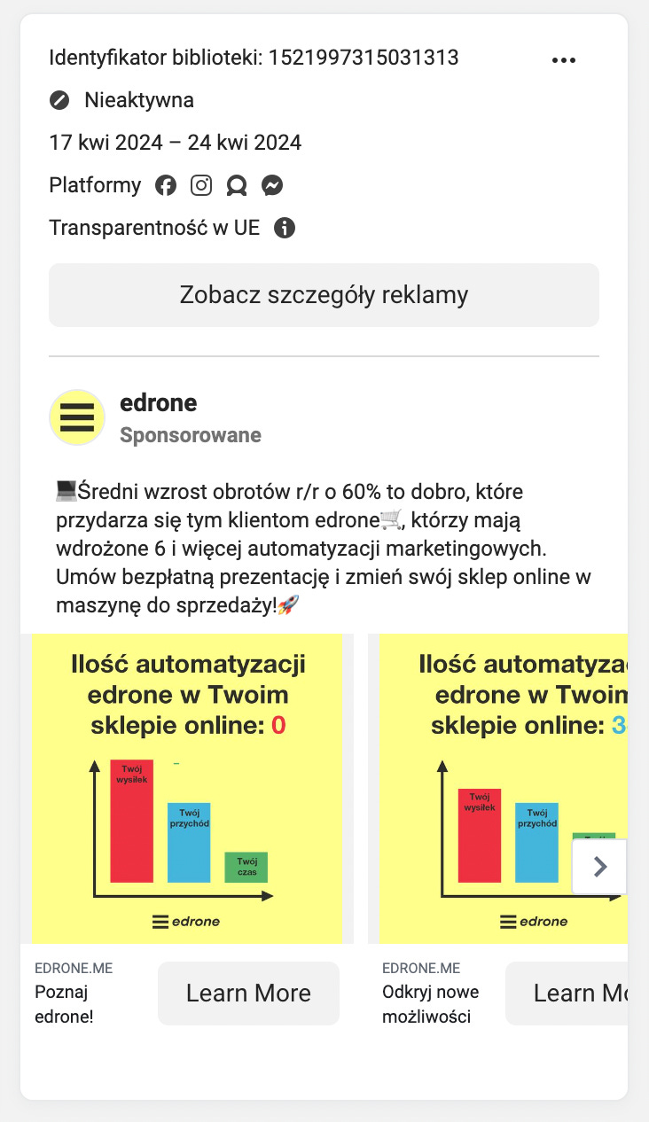 Dzięki temu można zestawić to, w jaki sposób narzędzie wywołało impakt na konwersję z niezależnego od narzędzia źródła. Sam test A/B z kolei pozwoli zdefiniować to, czy faktycznie narzędzie zwiększa jakość rekomendacji i czy tylko nie nadpisuje całej ścieżki, przypisując sobie niesłusznie zasługi innych reklam, czy szeregu osobnych działań.